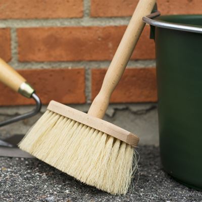 Various types of chalk and lime brushes with bristles in white fiber or myhalon and wooden back.