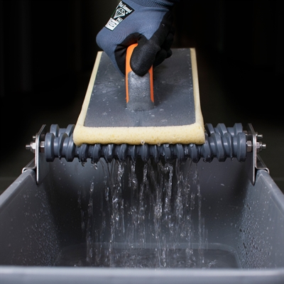 When tiling, grout residue are easily removed with a combination of a sponge float and bucket where the water is squeezed out.
