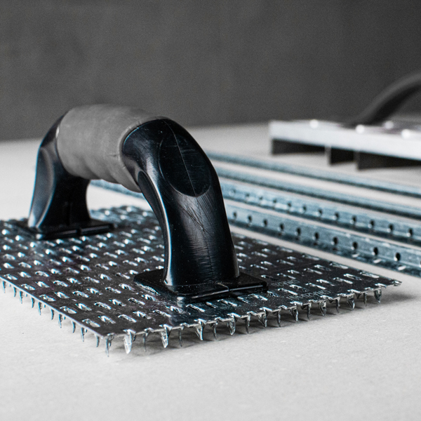 Usa a plastering float or spiked trowel to smooth and texture plastered surfaces such as concrete and create a fine or rough texture.