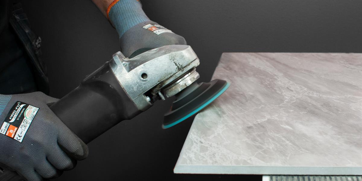 After cutting in granite ceramics and natural stone, the cut surface and the upper side can finally be polished with diamond polishing pads that are available with different grinding grains.